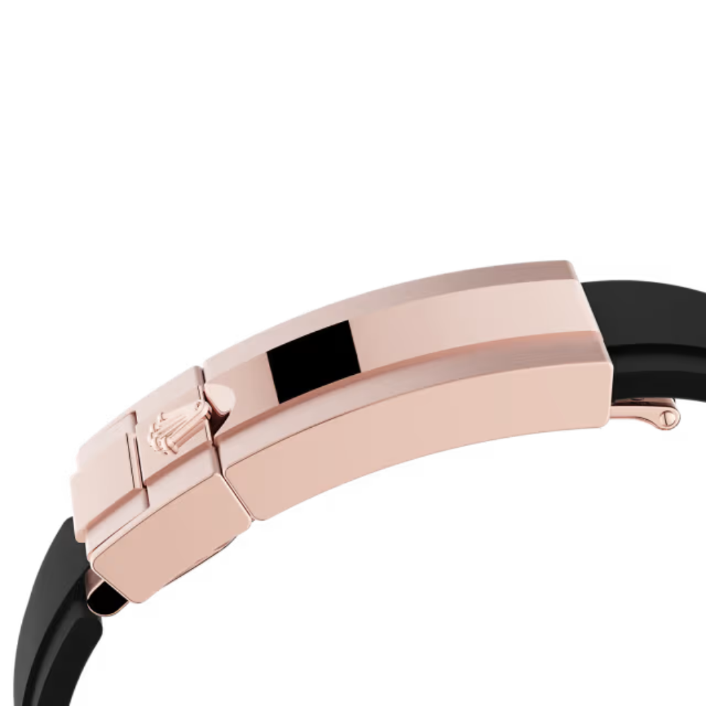 The Rolex Cosmograph Daytona M126515LN-0006 blends motorsport lineage with modern luxury. Crafted in 18 ct Everose gold, its robust 40 mm Oyster case pairs with a high-performance Oysterflex bracelet for exceptional comfort and durability. The signature black Cerachrom bezel with an engraved tachymetric scale underlines the model’s racing DNA.