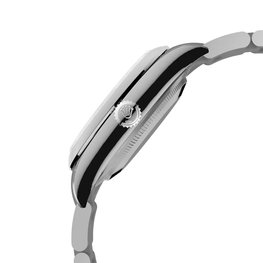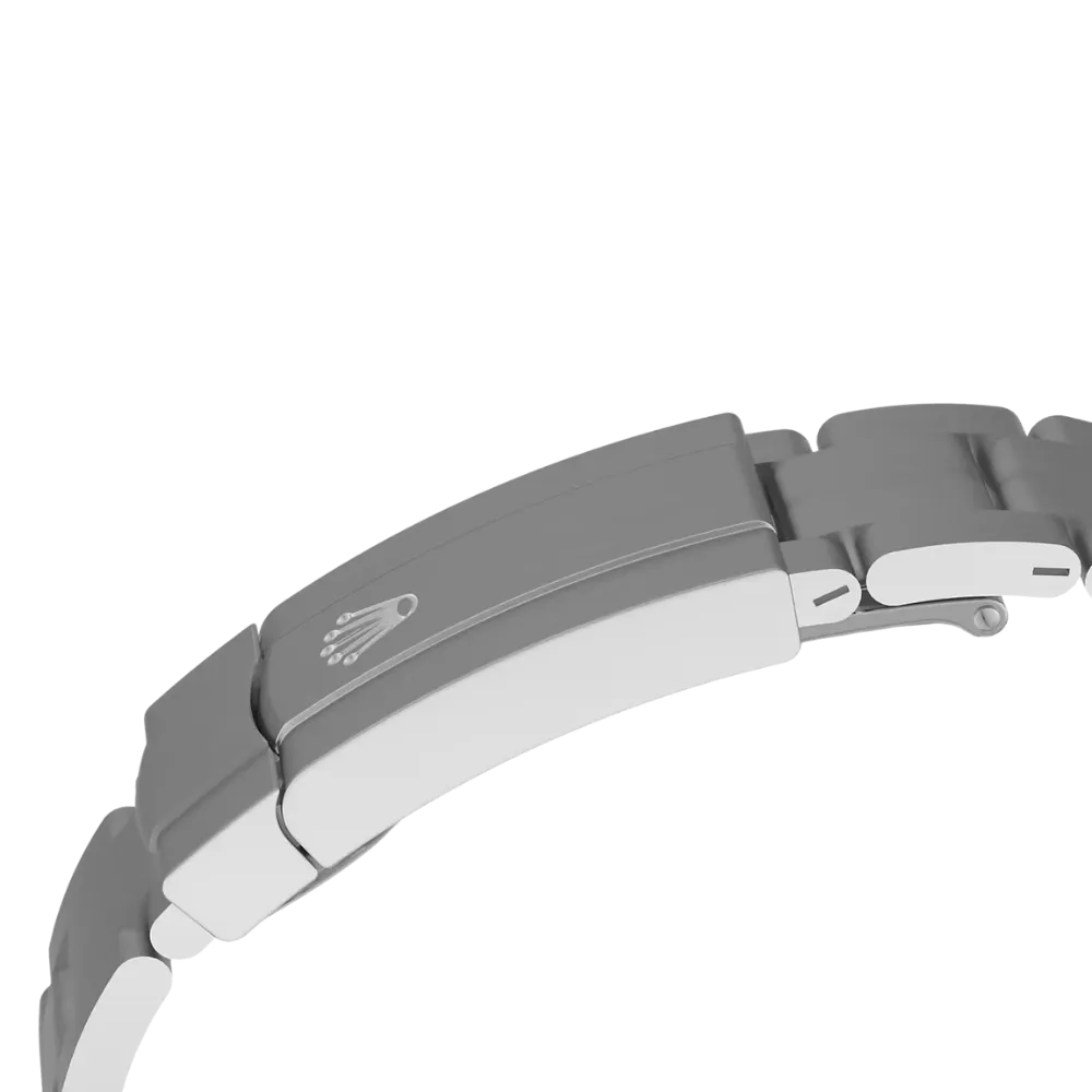 - Bracelet: Iconic Oyster bracelet (three-piece solid links) in Oystersteel; Folding Oysterclasp with Easylink 5 mm comfort extension.