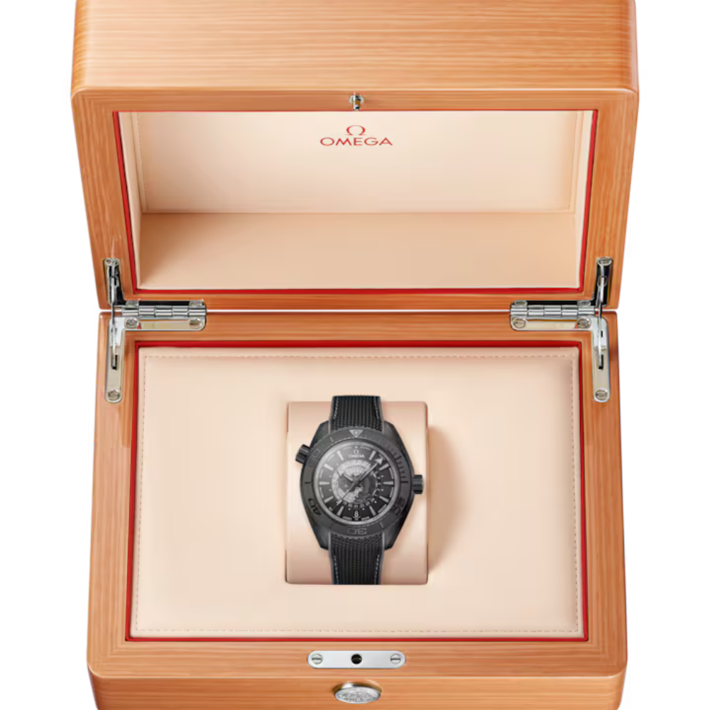 The Planet Ocean 600M 45.5 mm Ref. 215.92.46.22.01.007 is a bold professional dive watch combining high-performance ceramic materials with OMEGA’s Co-Axial Master Chronometer precision. Equipped with GMT functionality and water resistance to 600 meters, it is a versatile tool for divers and world travelers alike, merging technical mastery with sleek contemporary aesthetics.